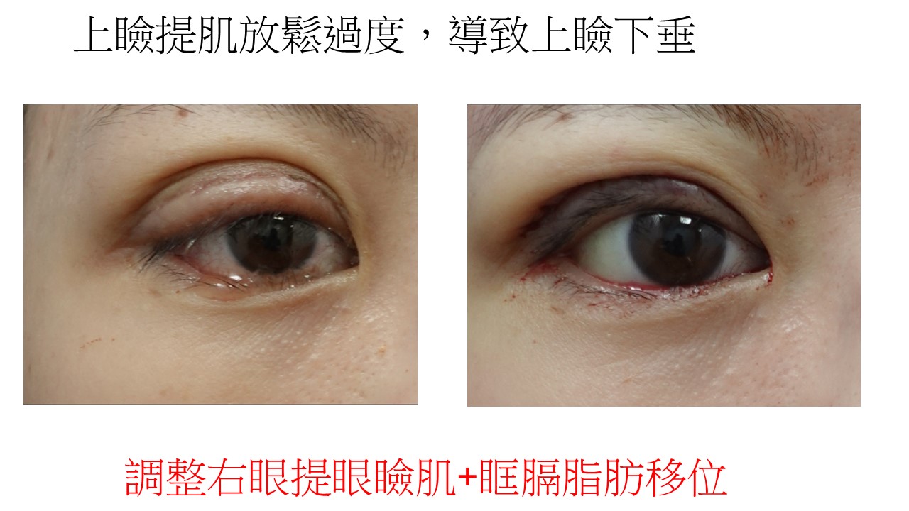 案例說明: 患者在醫學中心矯正下瞼退縮,導致過度下垂,經過早期的緊急手術。
