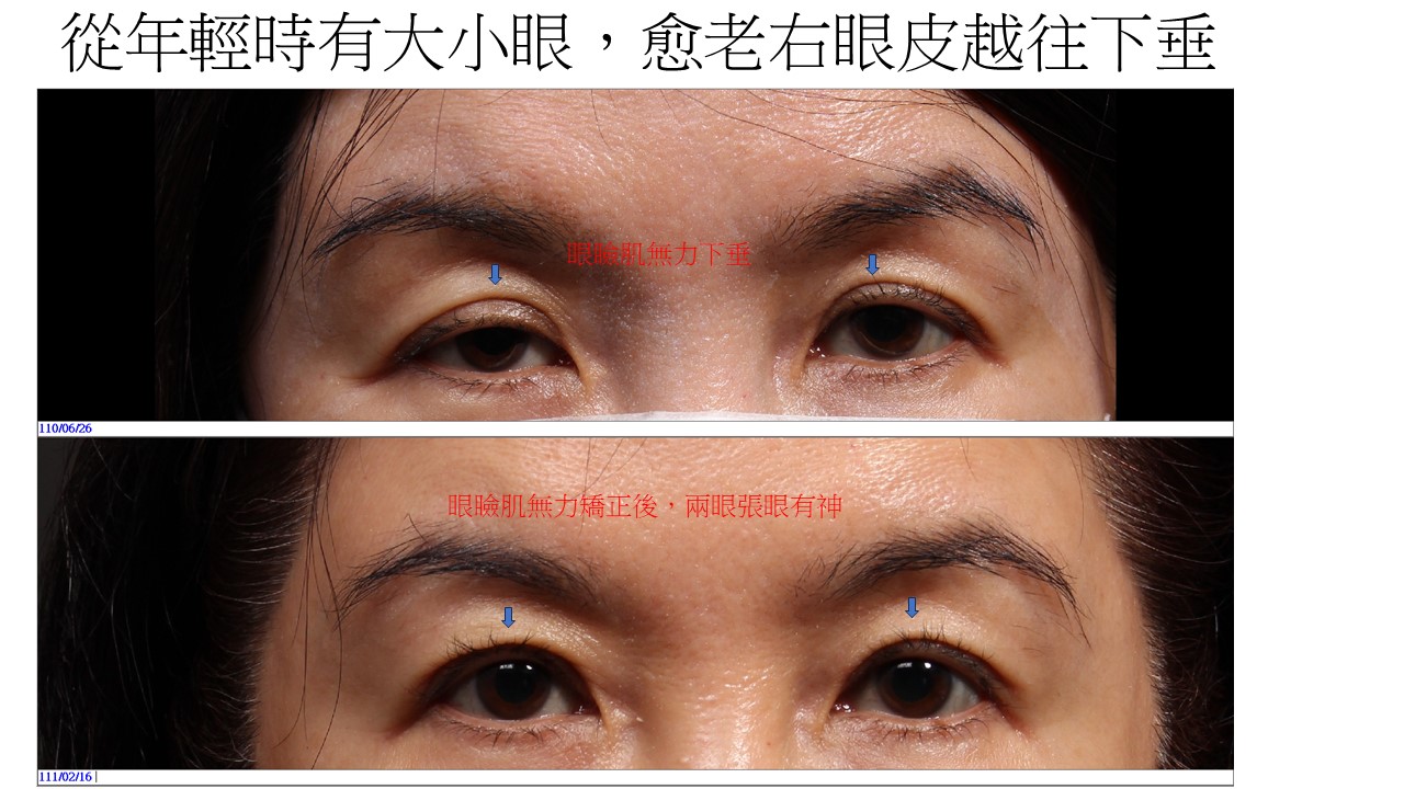 提眼瞼肌無力產生大小眼與眼皮鬆弛老化手術案例六