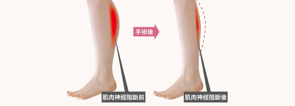 被阻斷的神經所支配的肌肉,因為無接受神經刺激而逐漸萎縮,達到瘦小腿的目的。 纖纖小腿手術完成後,只會留下針孔般大小的小孔,復原之後幾乎沒有疤痕,傷口恢復快速,在韓國是最多整形外科使用的方式。